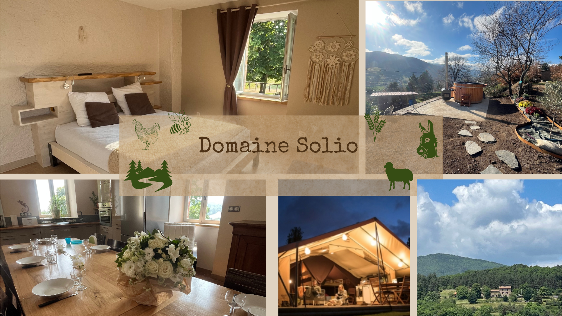 Au cœur de plusieurs hectares de prairie, de bois et de sentiers, le Domaine Solio est un refuge vivant : on se croise, on partage, on rit, mais chacun trouve aussi son coin de silence, son horizon, son instant suspendu.